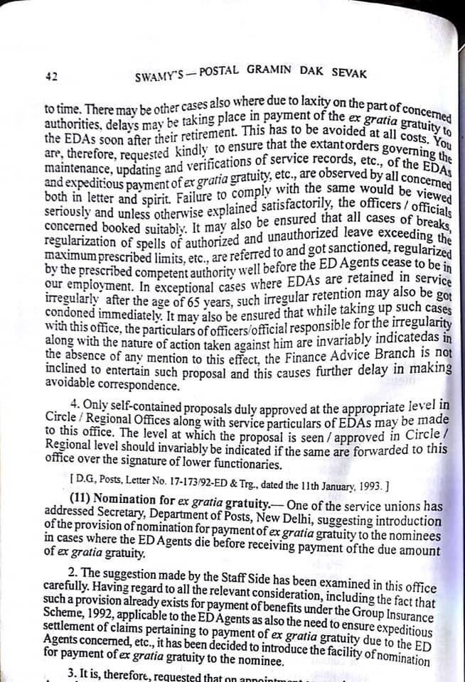 Ex gratia gratuity to GDS to be paid immediately on their retirement